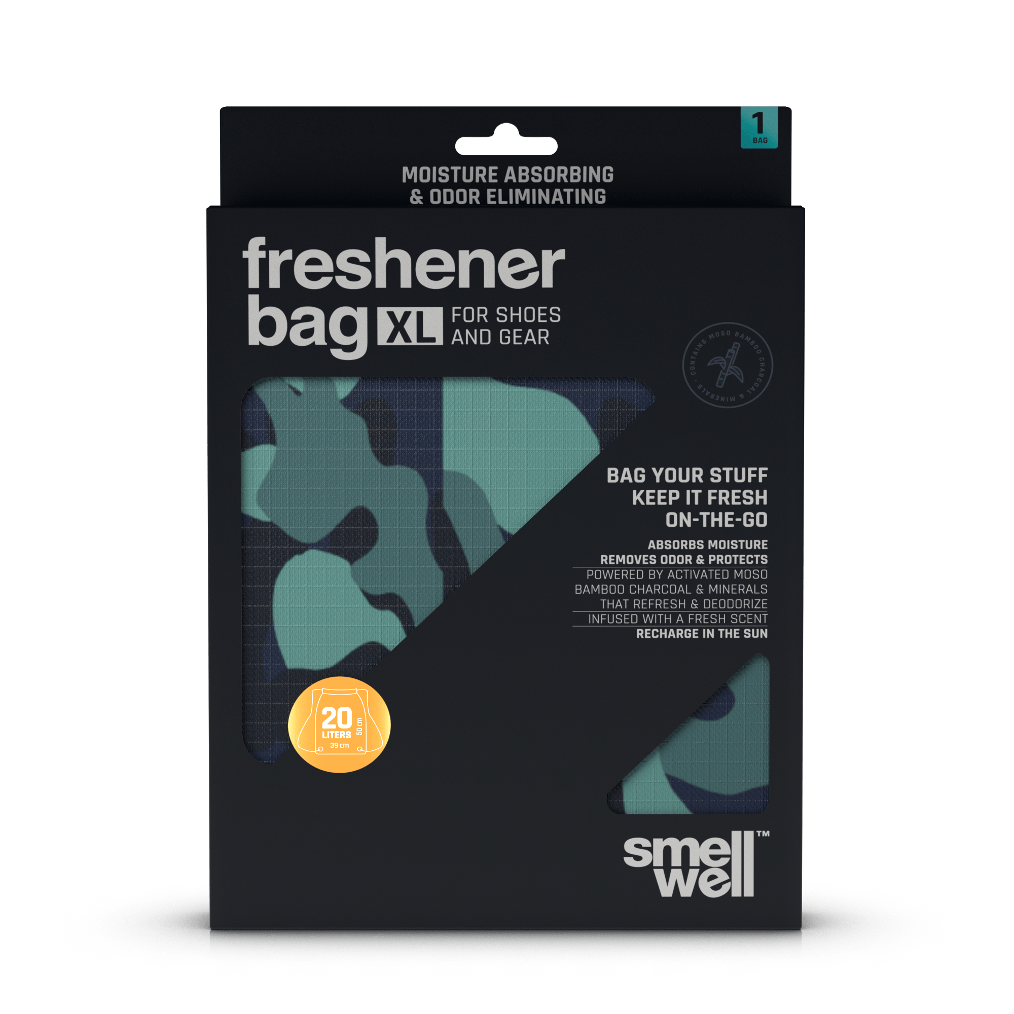 Freshener bag XL refreshes your shoes and gear so you can reuse what you like for longer. It absorbs moisture, neutralizes odour and protects against unwanted smells, moisture and bacteria. Simply bag your sweaty stuff and let your freshener bag go to work.